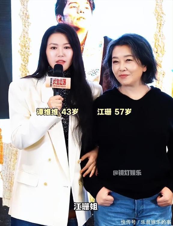 虽然看起来像母女,但发布会那天,江珊更吸引眼球。她穿得真随意:一件简单的黑色卫衣搭配牛仔裤,没啥华丽的衣服,也没精致的妆容,乍一看就像身边气质不错的普通阿姨,但透着一股亲切的生活气息。