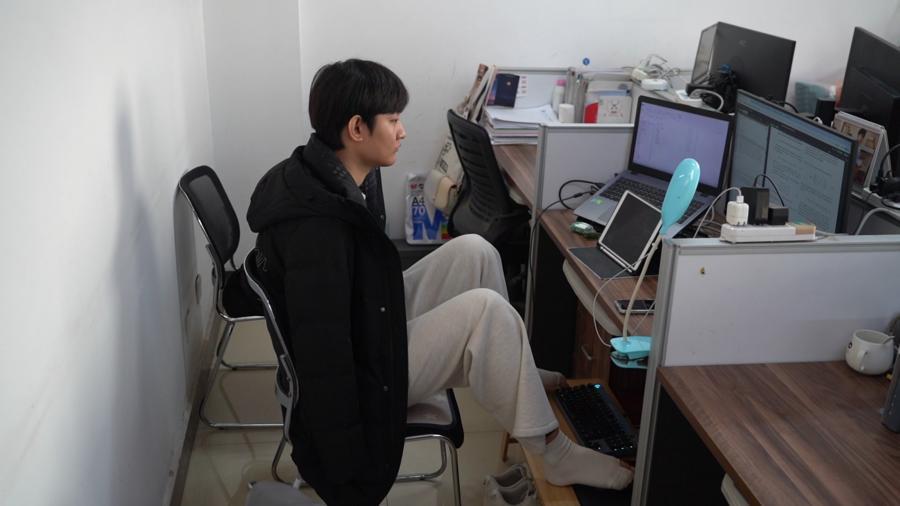 新华社太原1月18日电 一米八多的个子,清秀干净的脸庞,眼神清澈而坚韧——这是记者初见王海港时的印象。在太原理工大学数学学院的自习室里,他用左脚敲击键盘,右脚操控鼠标,正专注于一篇全英文专业论文。空荡荡的衣袖,无声诉说着他求学之路的艰辛。